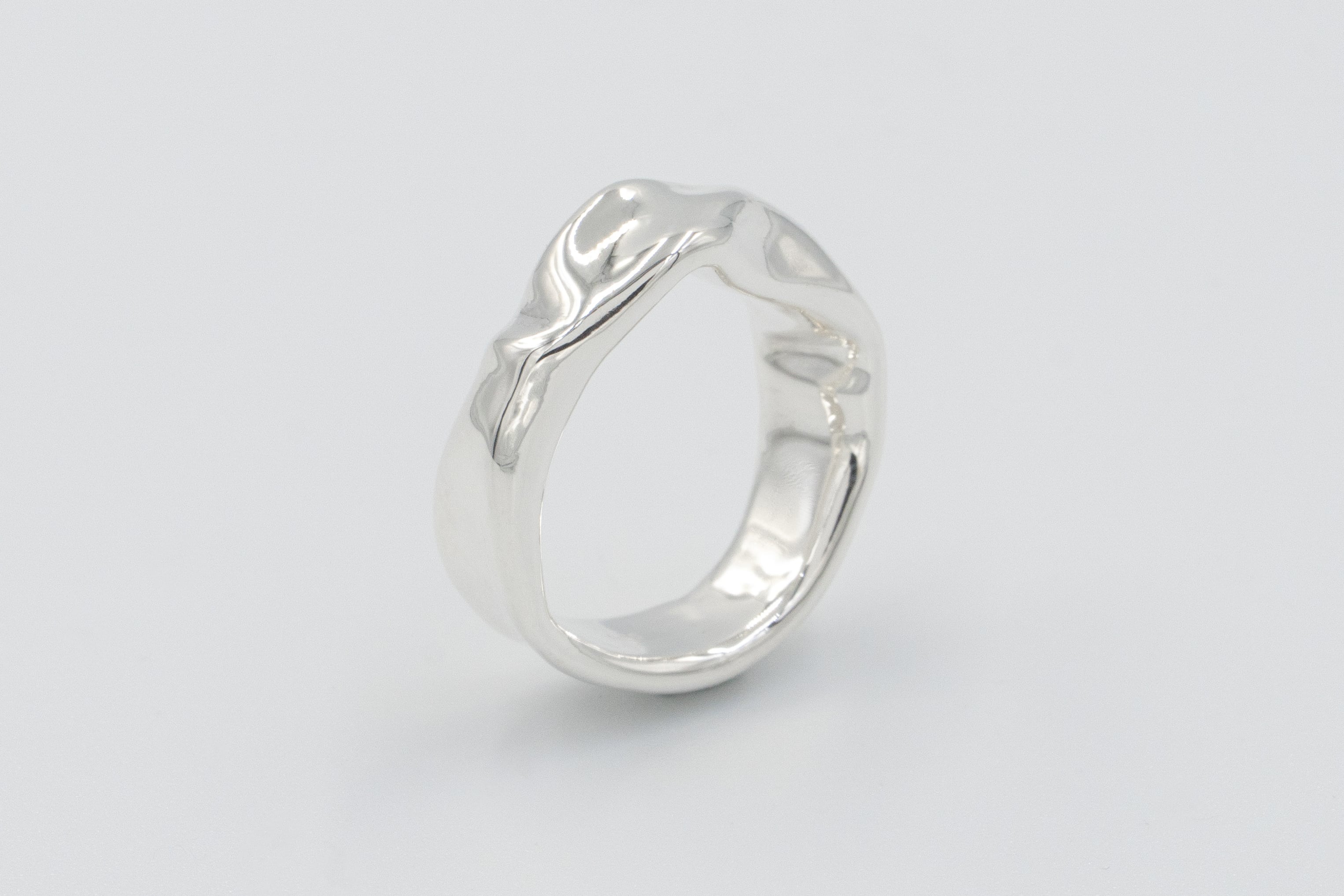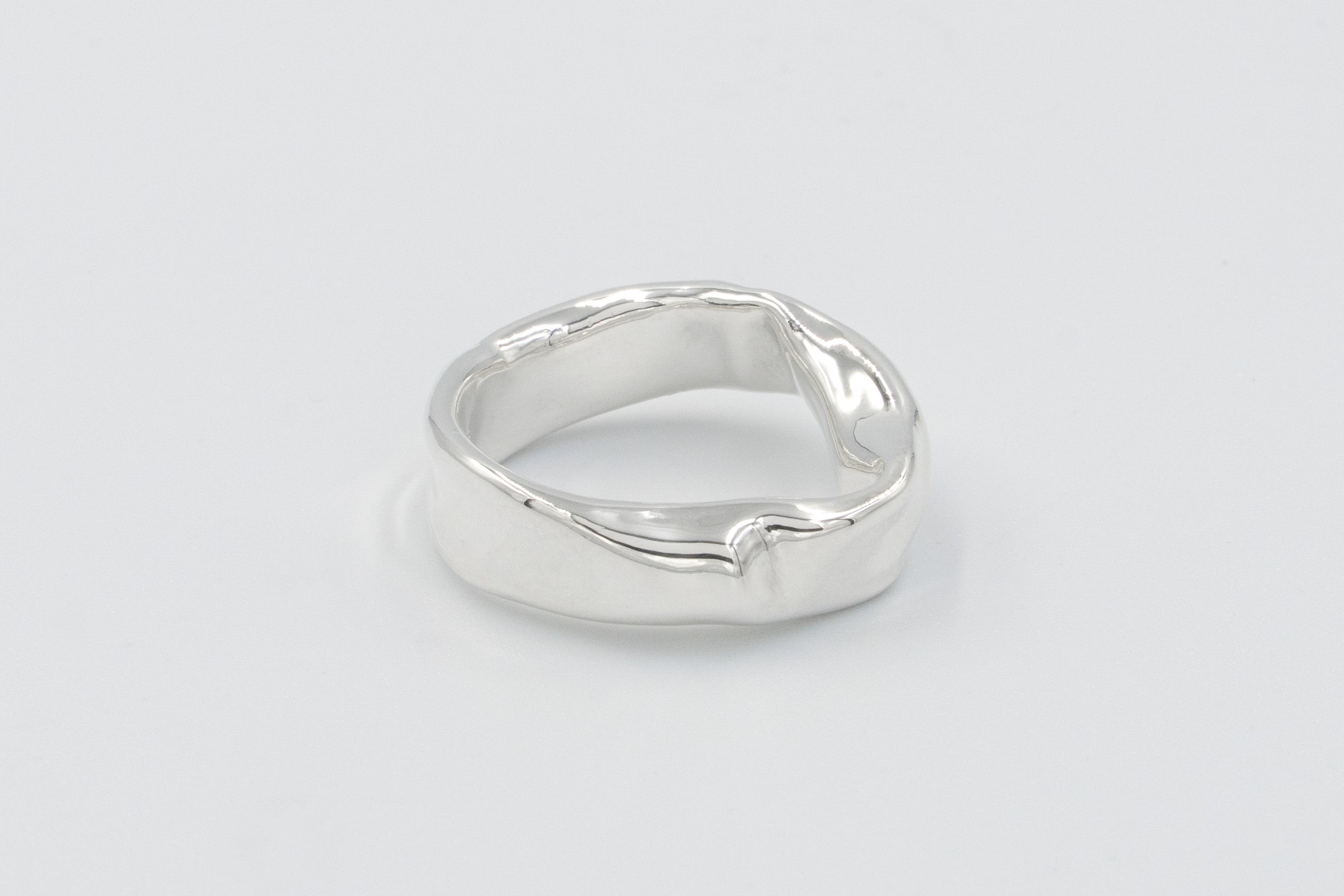 このリングはあえて歪み(Distortion)のあるデザインを取り入れ、不完全さの美しさを表現しています。