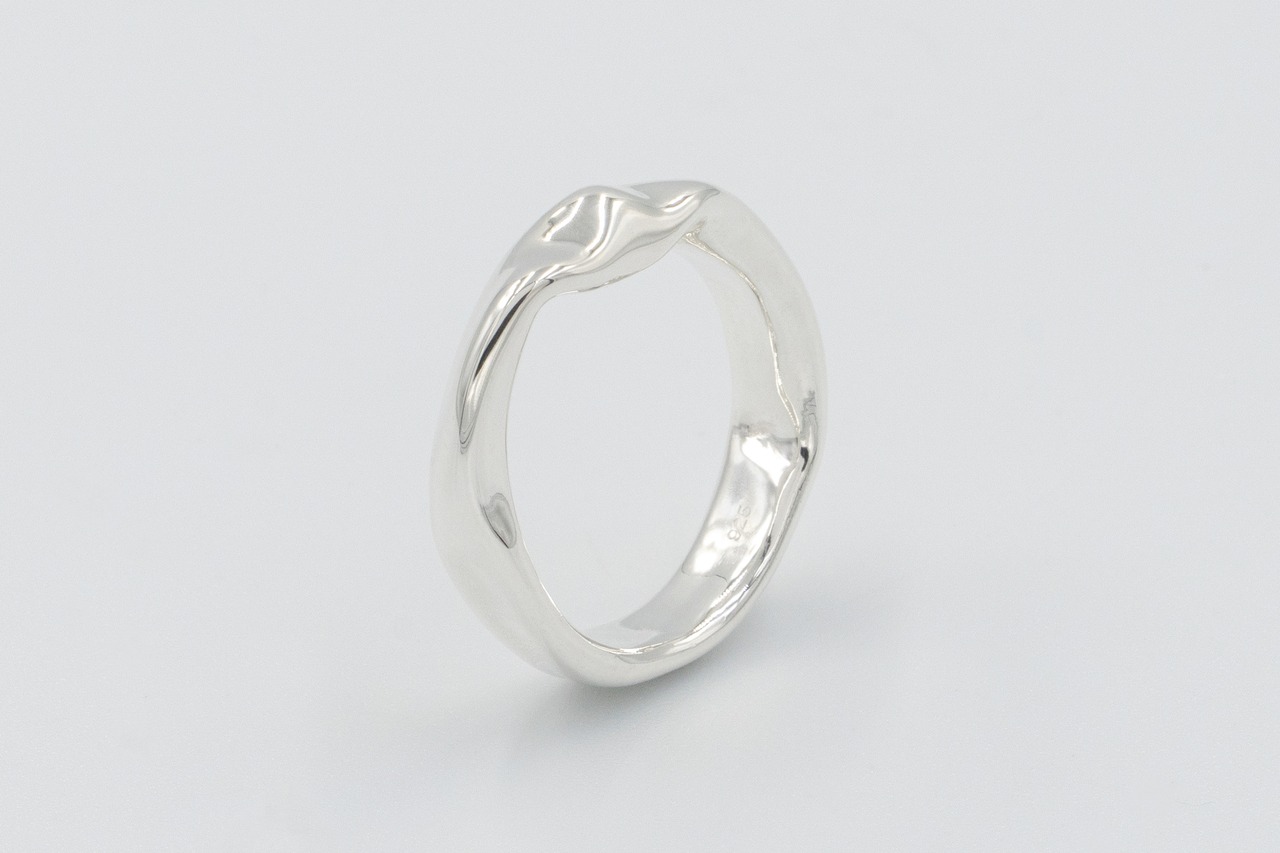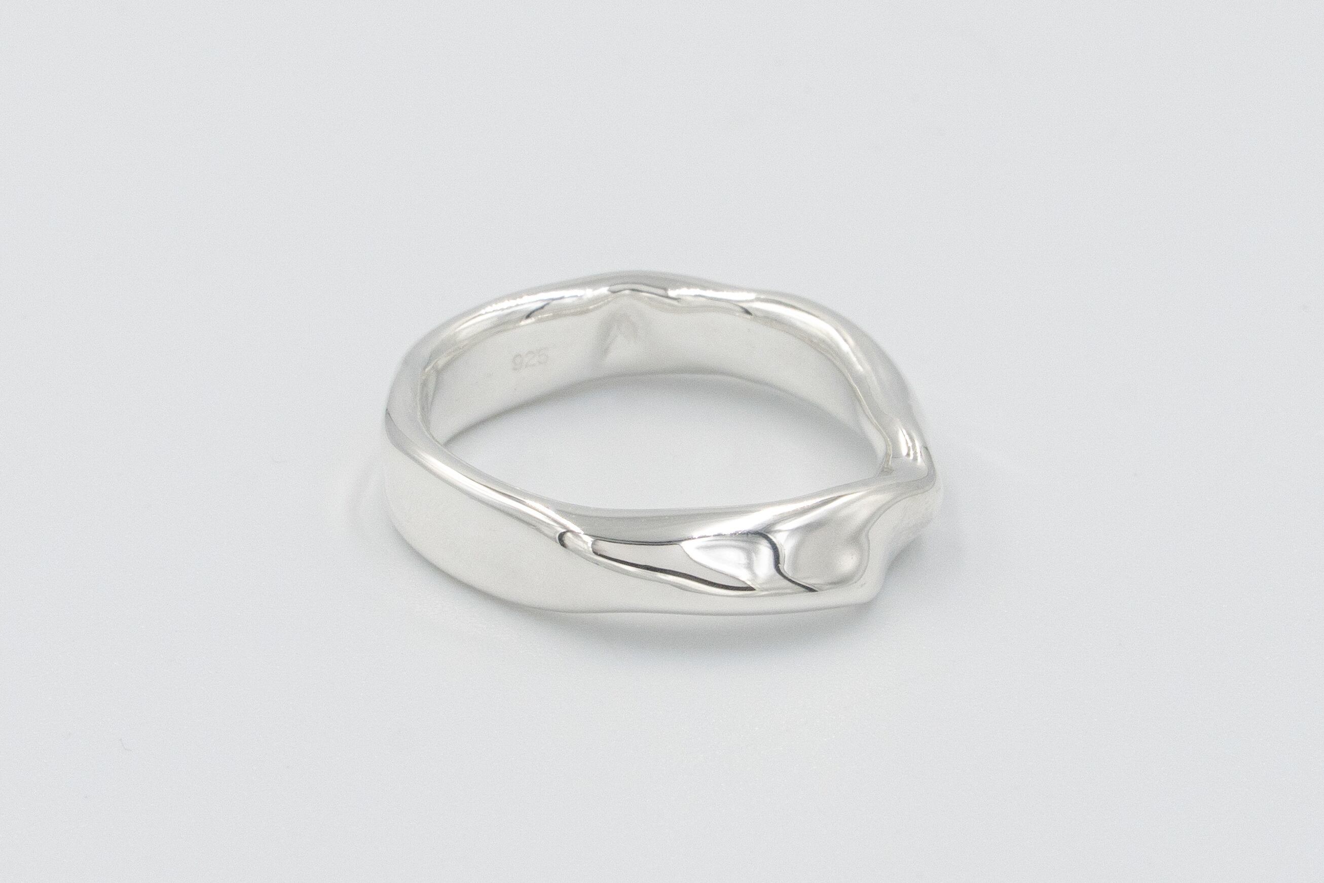 このリングはあえて歪み(Distortion)のあるデザインを取り入れ、不完全さの美しさを表現しています。