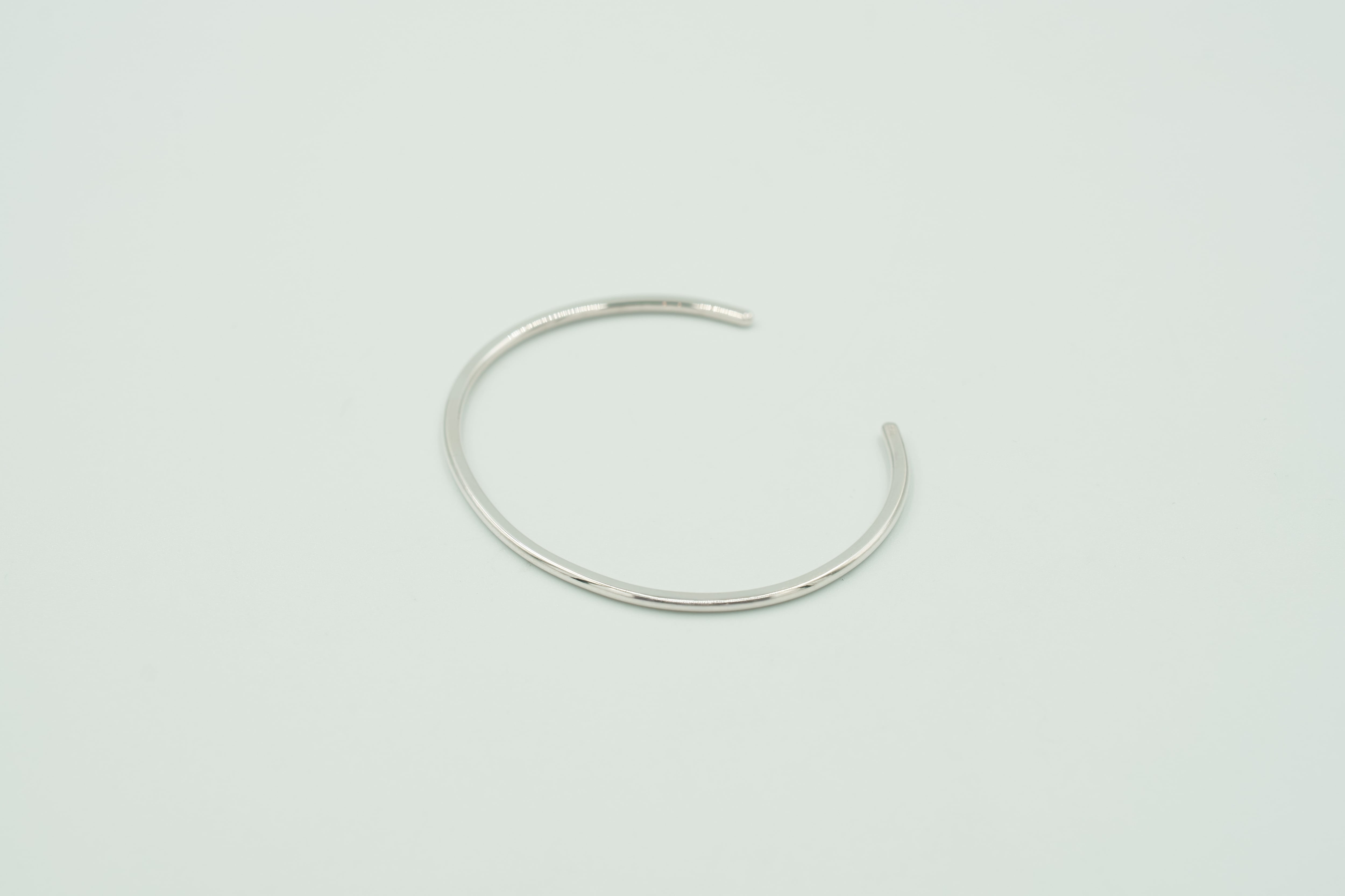 薄型のスタイルは、手元に軽やかさを与え、他のアクセサリーとの重ね付けにも最適です。このバングルは、デザインのシンプルさが引き立つ一品で、あなただけの個性を大切に表現してくれるでしょう。